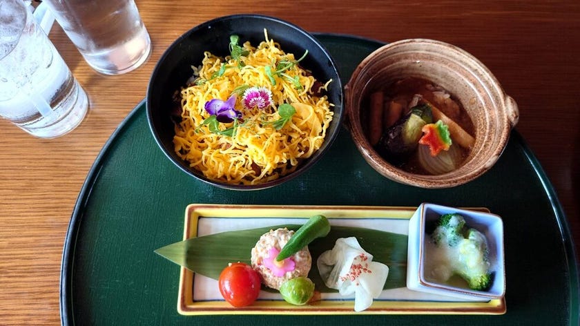 混雑の中でも、美味しいスイーツをいろいろ食べられて、夜ご飯は和食をいただきました🌸