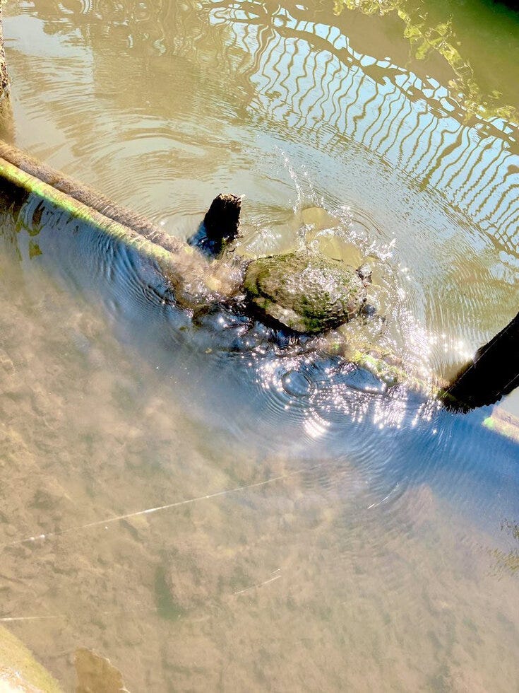 水路には亀や魚、ザリガニ、カニ、虫などがいて