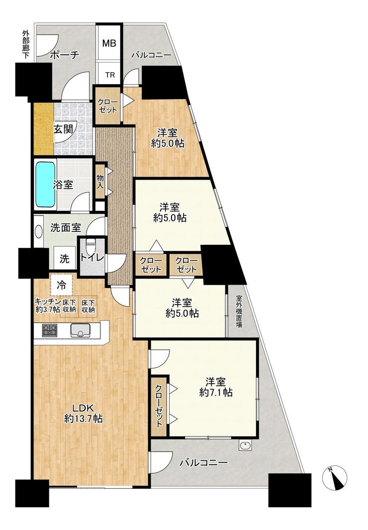 | 主要採光 | 南西向 | バルコニー | 南西向18.48㎡ |